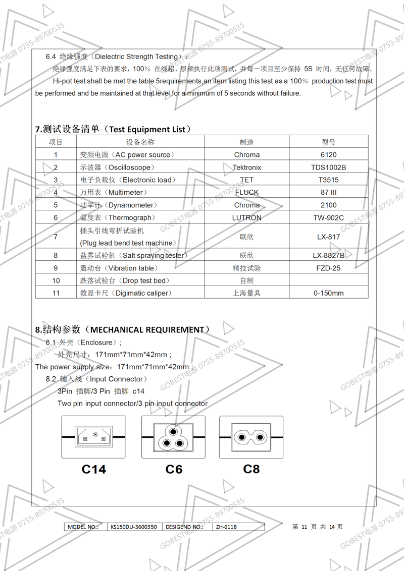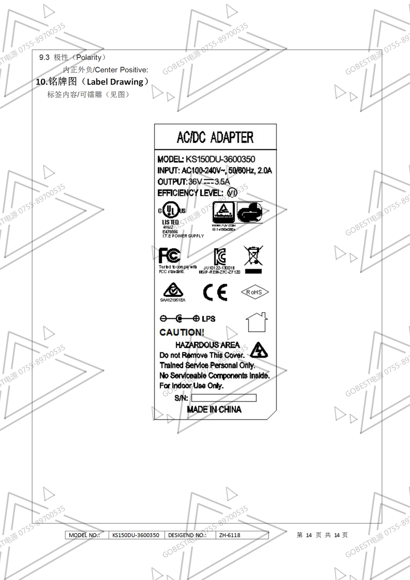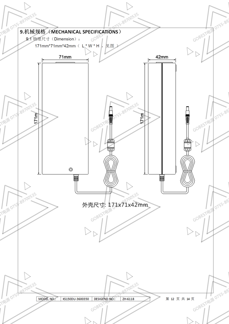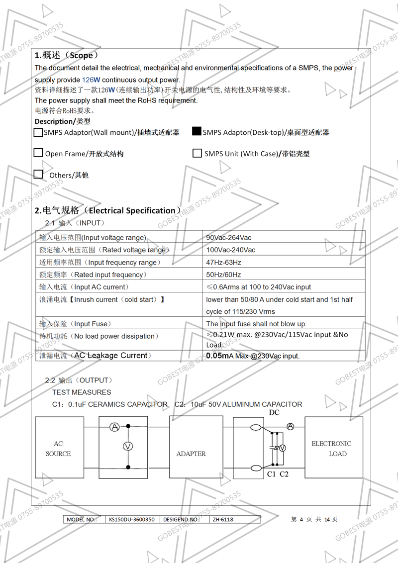 12V1.25A電源適配器規(guī)格書(桌面式)