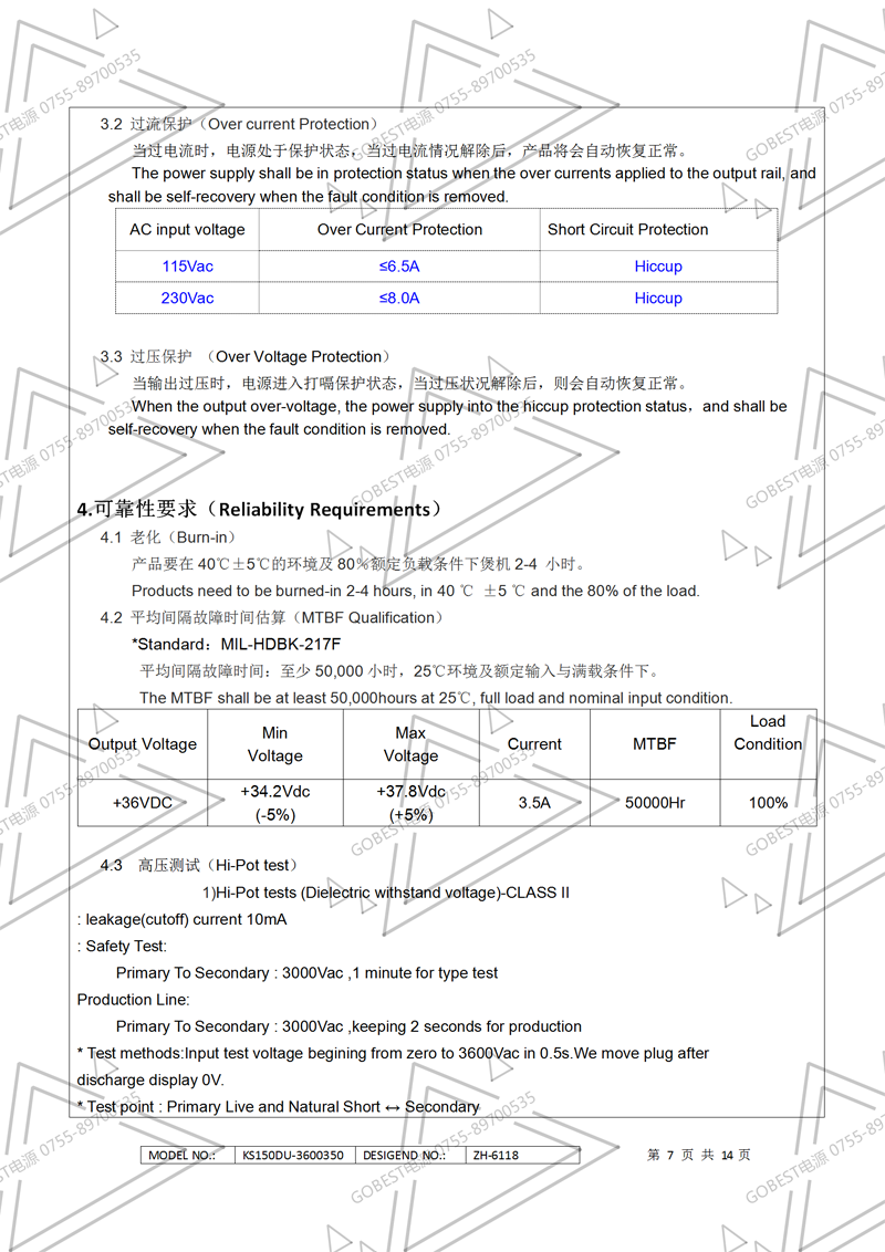 36V3.5A電源適配器規(guī)格書美規(guī)UL認(rèn)證