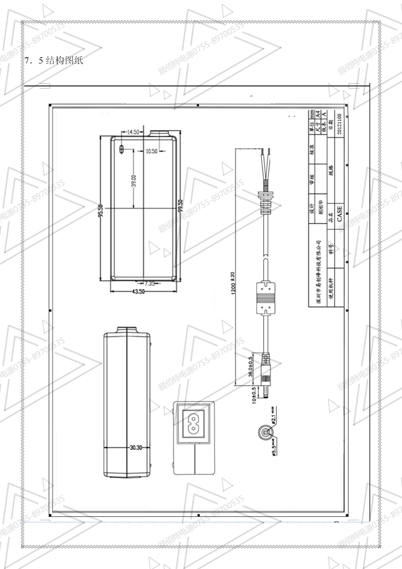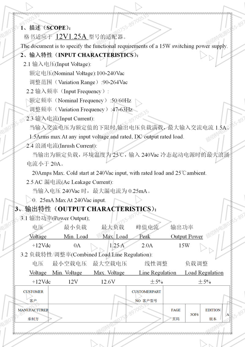 12V1.25A電源適配器規(guī)格書(桌面式)