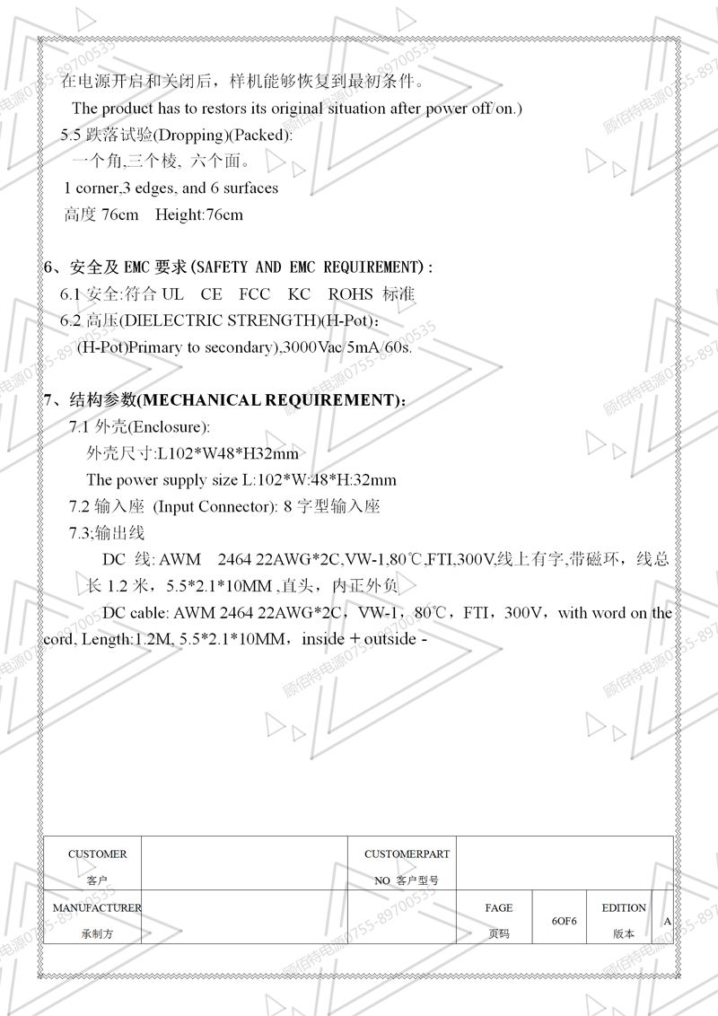 24V6A電源適配器帶PFC電路規(guī)格書(新模具)