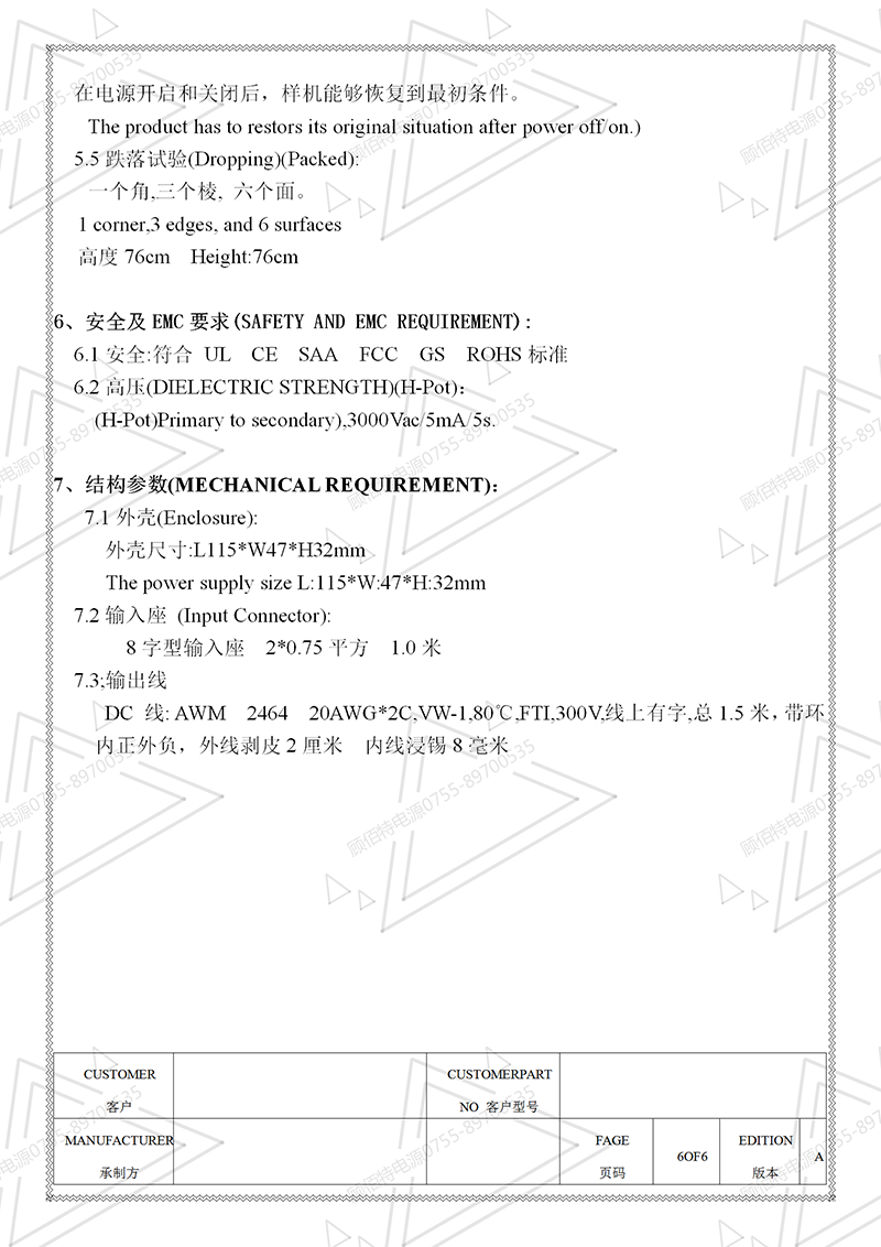 電源規(guī)格書